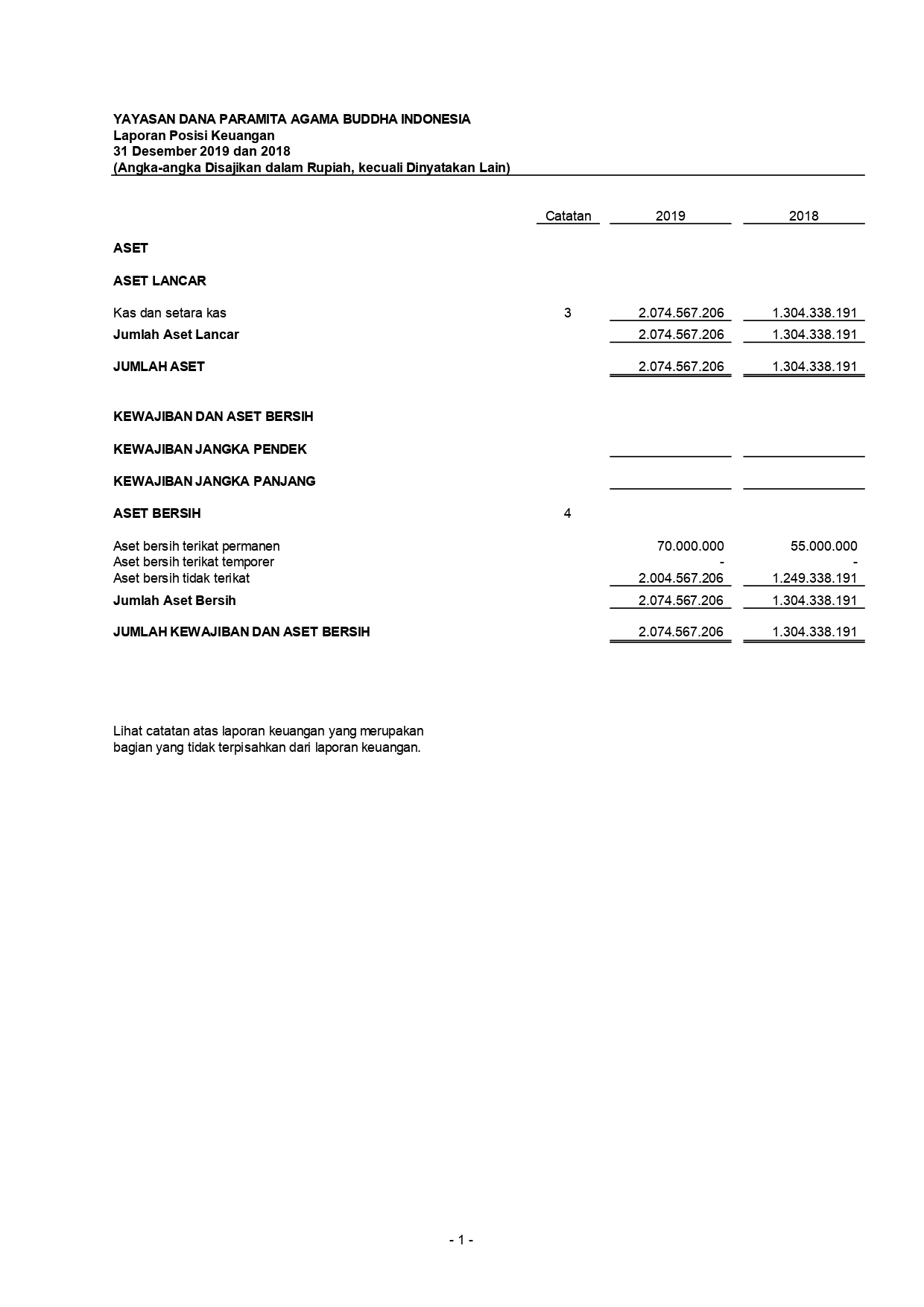 Laporan audit - LAPORAN AUDIT YAYASAN DANA PARAMITA AGAMA BUDDHA INDONESIA TAHUN 2019