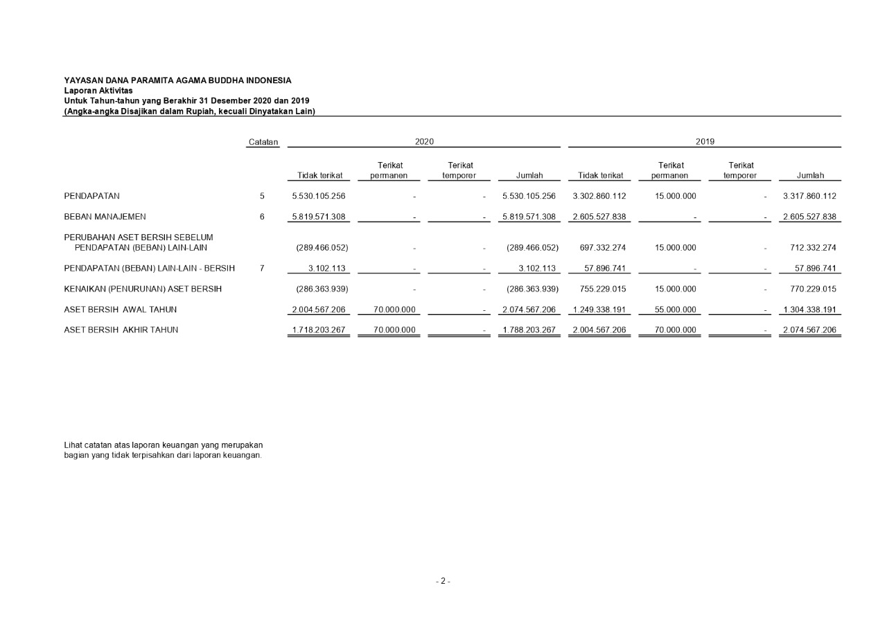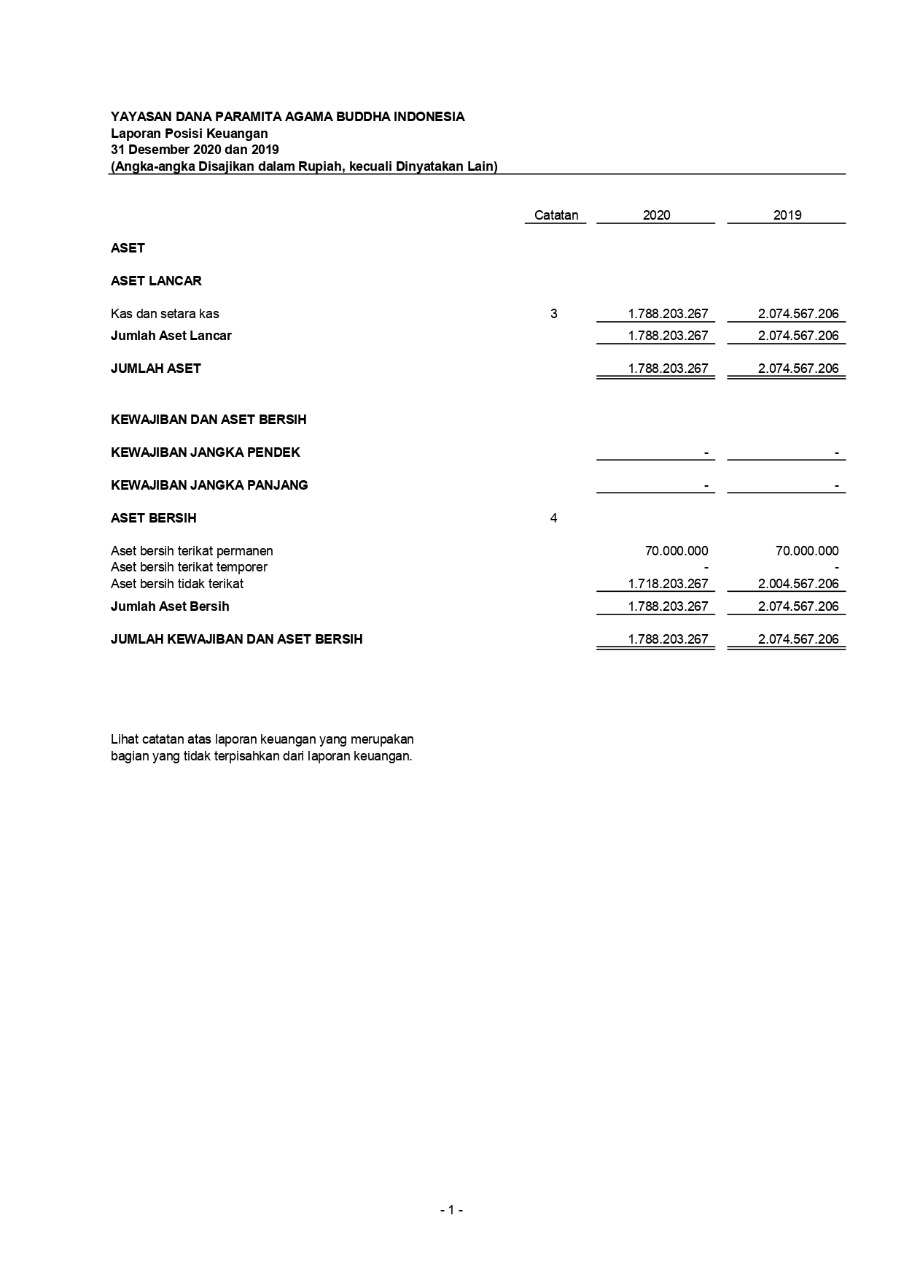 LAPORAN AUDIT YAYASAN DANA PARAMITA AGAMA BUDDHA INDONESIA TAHUN 2020